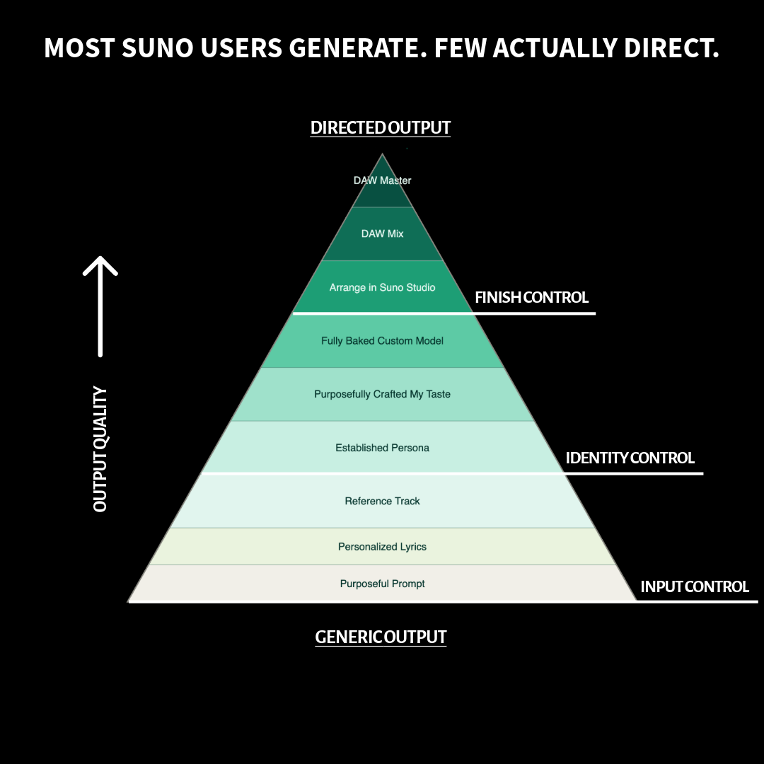There is a pyramid in AI music production. Most creators are at the bottom of it. A few are climbing. Almost nobody is at the top.